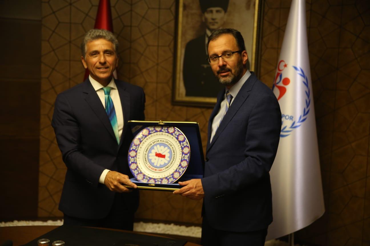 Genel Başkan konuşmasında; “Amatörler olarak Sayın Bakanımıza kurumsal olarak ilk randevuyu TASKK’a vermesinden dolayı şükranlarımızı sunar, ülkemiz gençliği için 81 il’de spor adına her türlü işbirliği ve hizmete talip olduğumuzu belirtir, yeni görevinde başarılarının devam etmesini temenni ederim.” dedi.