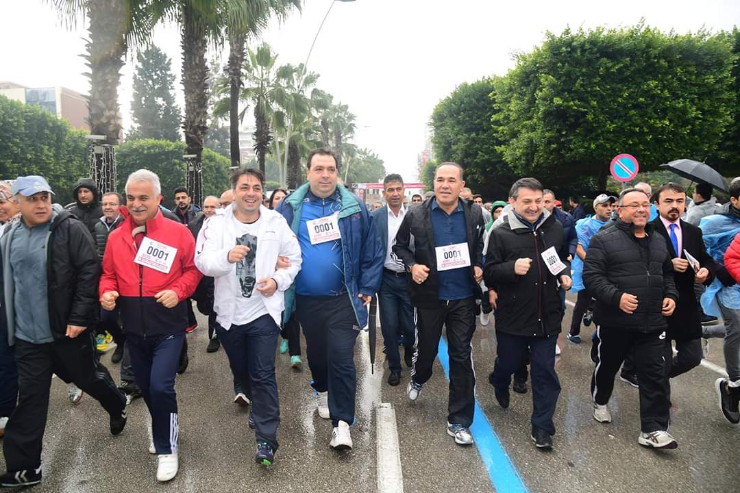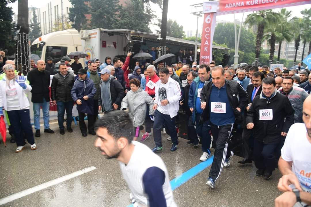 Adana Valisi Mahmut Demirtaş ve Büyükşehir Belediye Başkanı Hüseyin Sözlü'nün birlikte başlattığı maraton koşusuna; yağmura rağmen Adanalılar yoğun ilgi gösterdi.
