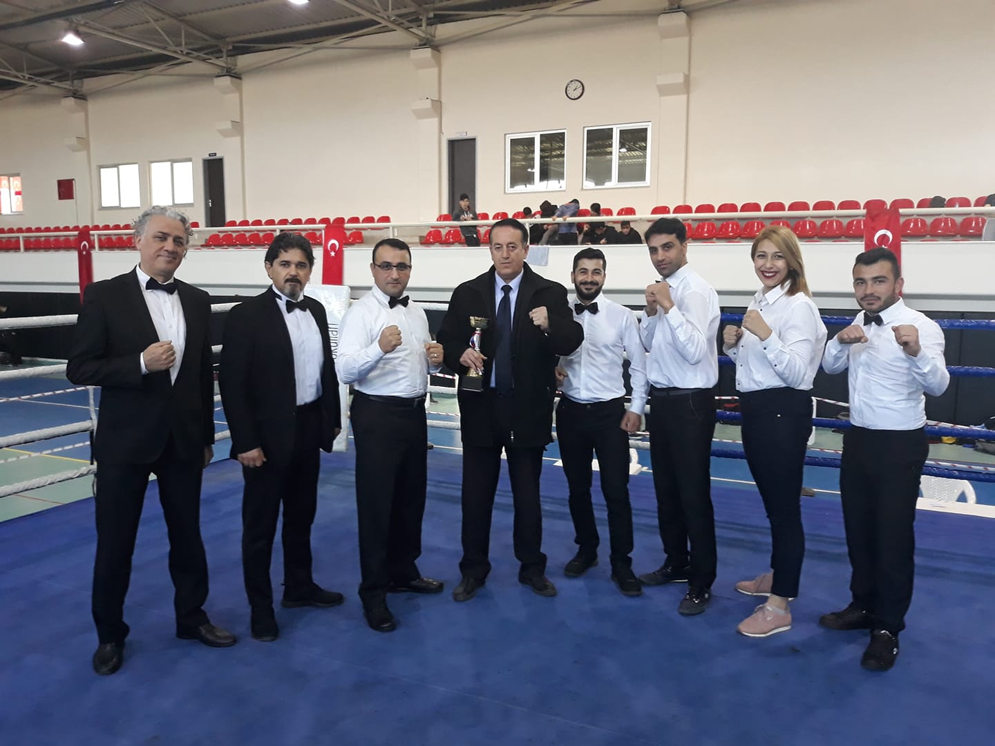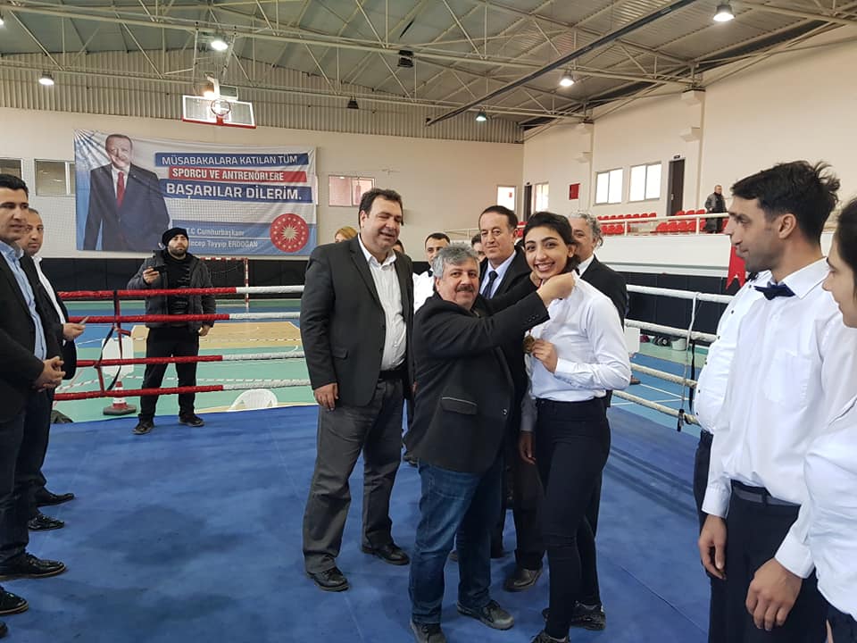 Bu şampiyonada mücadele eden takımlarımızı kutluyorum. Emeği geçen tüm arkadaşlarımızı ve görevlileri tebrik ediyoruz. Hakem arkadaşlarımızı ayrı ayrı tebrik ediyoruz. Onlar her zaman kupa ve madalya alacakları belirlediler. Biz ise bu gün bu spora her şartta ve zorlukta hizmet eden siz değerli hakemlerimize ve teknik ekibe kupa vermek istedik. Bu kupayı sembolik olarak sizlere takdim ediyoruz. Emeğiniz ve çabanız için çok teşekkür ederiz. Ayrıca ilk kez hakem olarak ringlere çıkan şampiyon sporcumuz Elif Aybike Benli kardeşimize de madalya takdim ederek, sporculuk hayatındaki başarılarına inşaallah hakemlikte de devam etmesini temenni ederiz, dedi.
