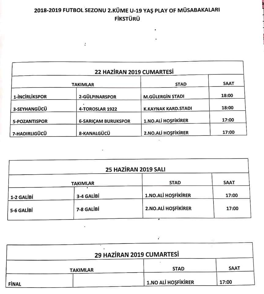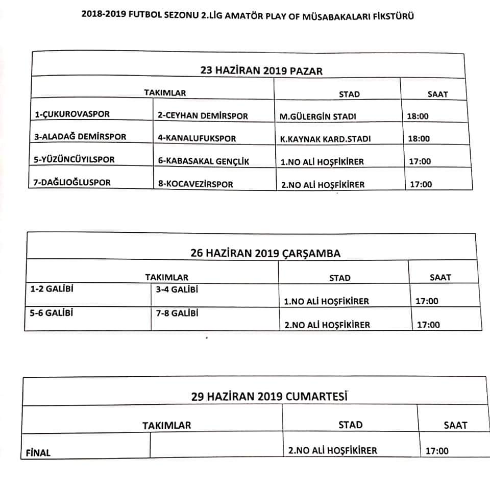 “U-19 Play Off, 22 Haziran Cumartesi Günü; 2.Amatör Lig Play Off ise 23 Haziran Pazar günü start alacak.