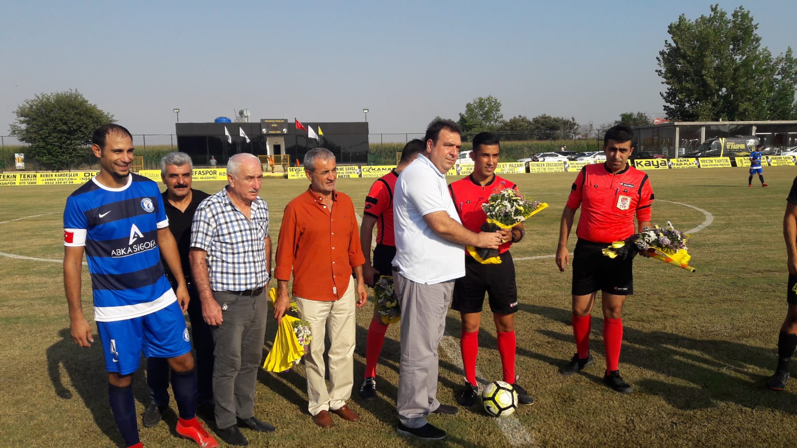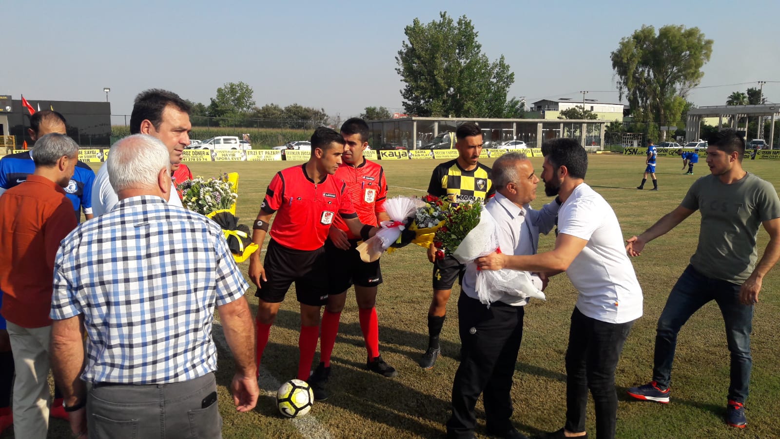 Vefaspor Tesislerinde oynanan 1. Amatör Lig A Grubu müsabakası öncesi ASKF Başkanı Dr Ahmet BOZAN ile TÜFAD Adana Şubesi Başkanı Mehmet Sümer, Futbol İl Temsilcisi Bülent OYMACI ve MUSADER Başkanı Ragıp Okur iki takıma ve hakemlere ''Hayırlı Olsun'' temennisinde bulunarak hakem triosuna çiçek takdim ettiler.