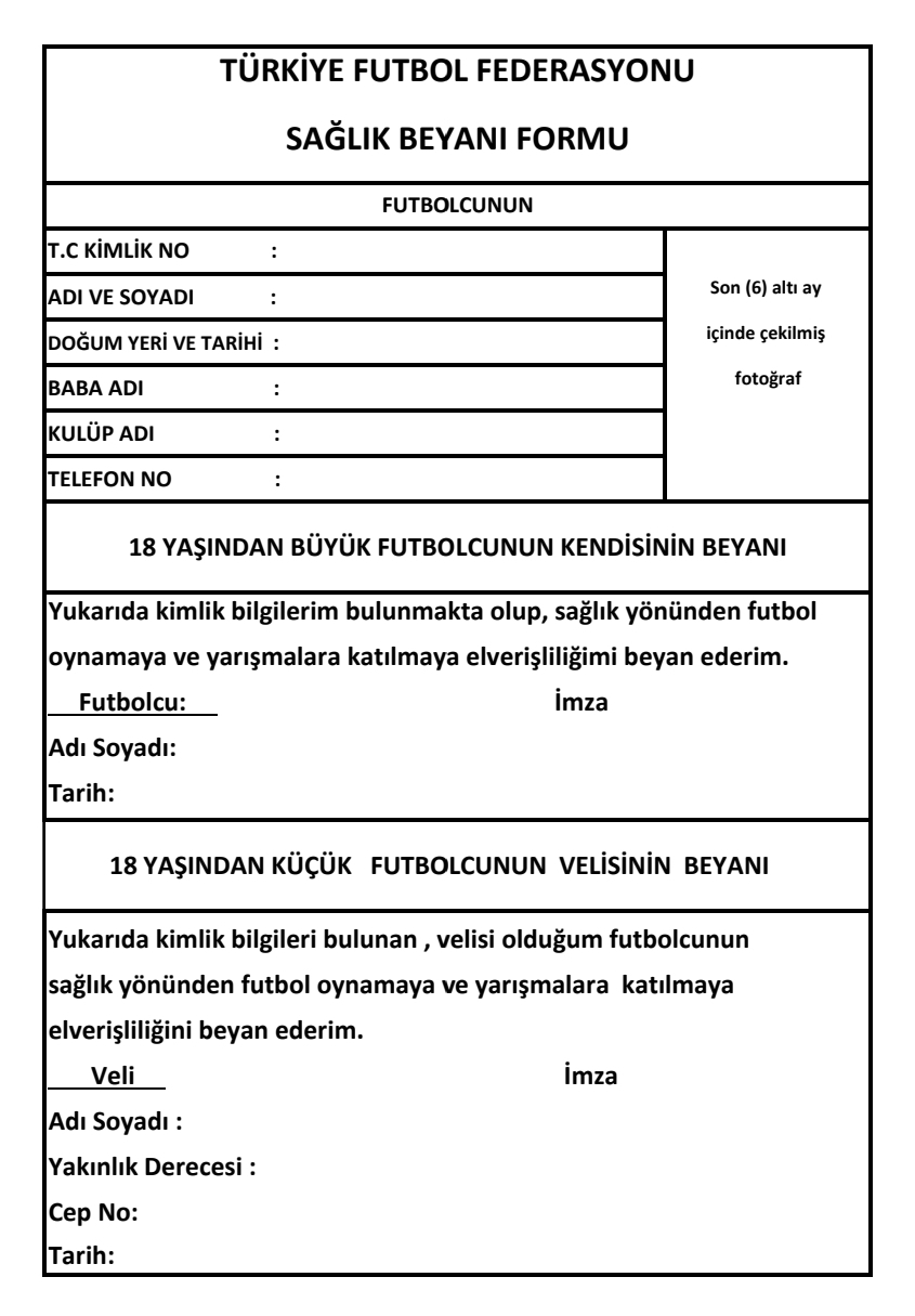 Yapılan bu değişiklik ile amatör futbolcular ve sporcularda sağlık raporu sadece Filiz lisanslarda istenecektir. Vize ve referanslarda sağlık raporu yerine 18 yaşından büyük futbolcu ve sporcuların kendisinin 18 yaşından küçük futbolcu ve sporcuların ise velisinin imzalayacağı sağlık beyanı formunu vermeleri yeterli olacaktır.