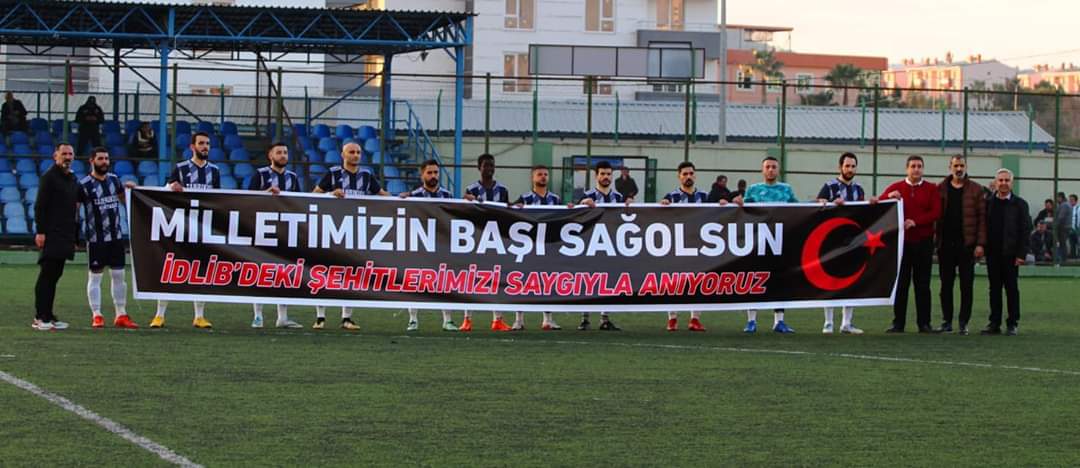 Amatör Kulüplerimiz İdlib'de şehit olan kahraman askerlerimiz için pankartalar, dövizler ve Ay Yıldızlı formalarla ile müsabakalara çıkarak birlik ve beraberlik mesajı verildi. Sporun gücünün Türkiye'nin her yerinde hissedildiği bu günlerde hep birlikte tek yürek olarak en üst seviyede destek mesajlarının verilmesi çok anlamlıdır.