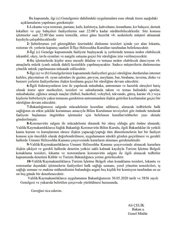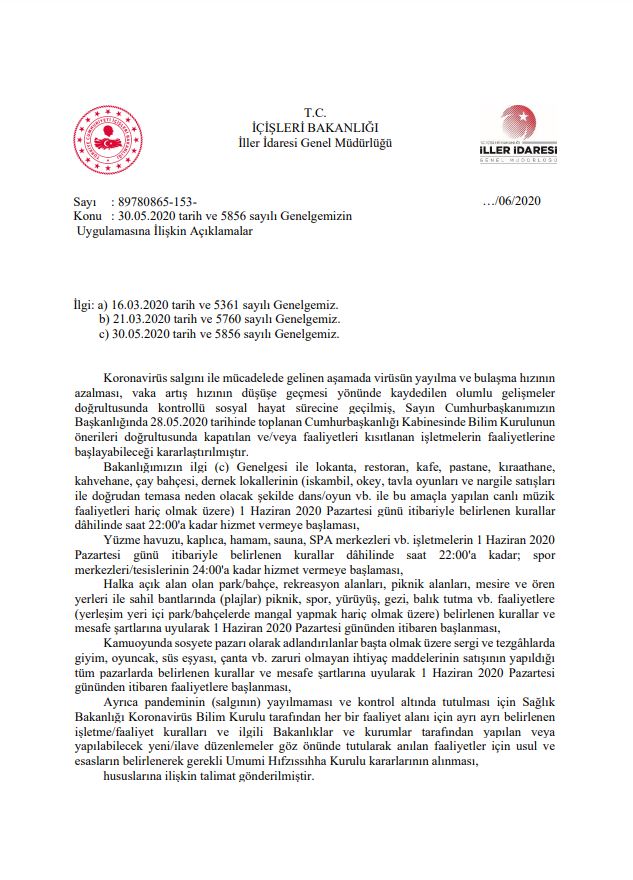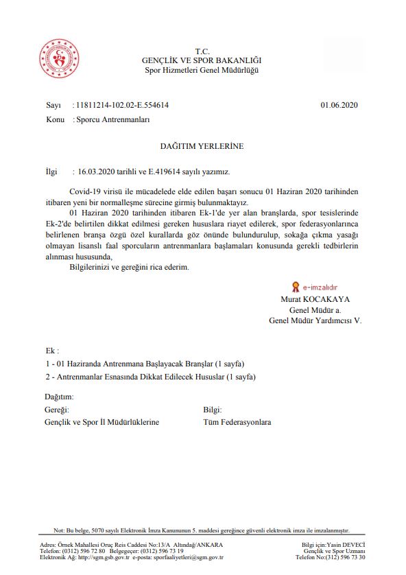 Spor Bakanlığı tarafından yayınlanan genelgeler aşağıda gösterilmiştir: