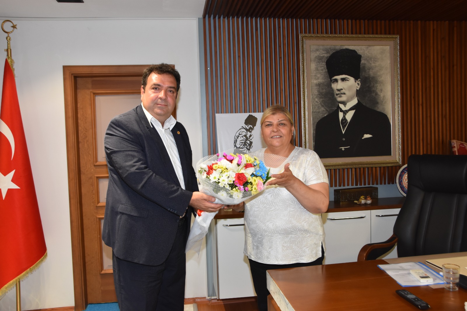Ziyarette ASKF Yönetim Kurulu Ceyhan Belediye Başkanı Hülya Erdem’e günün anısına çiçek takdim ettiler.