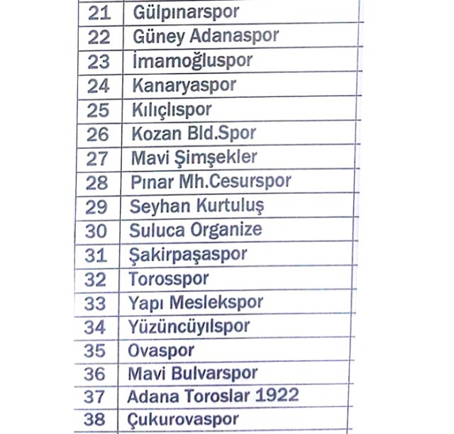U-12 kategorisine katılmak için beyan veren takımlarımız: