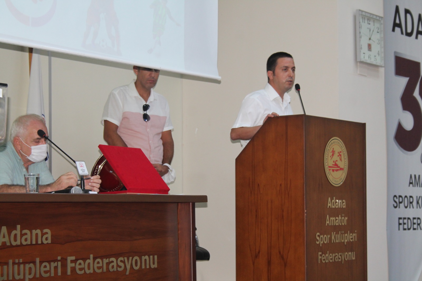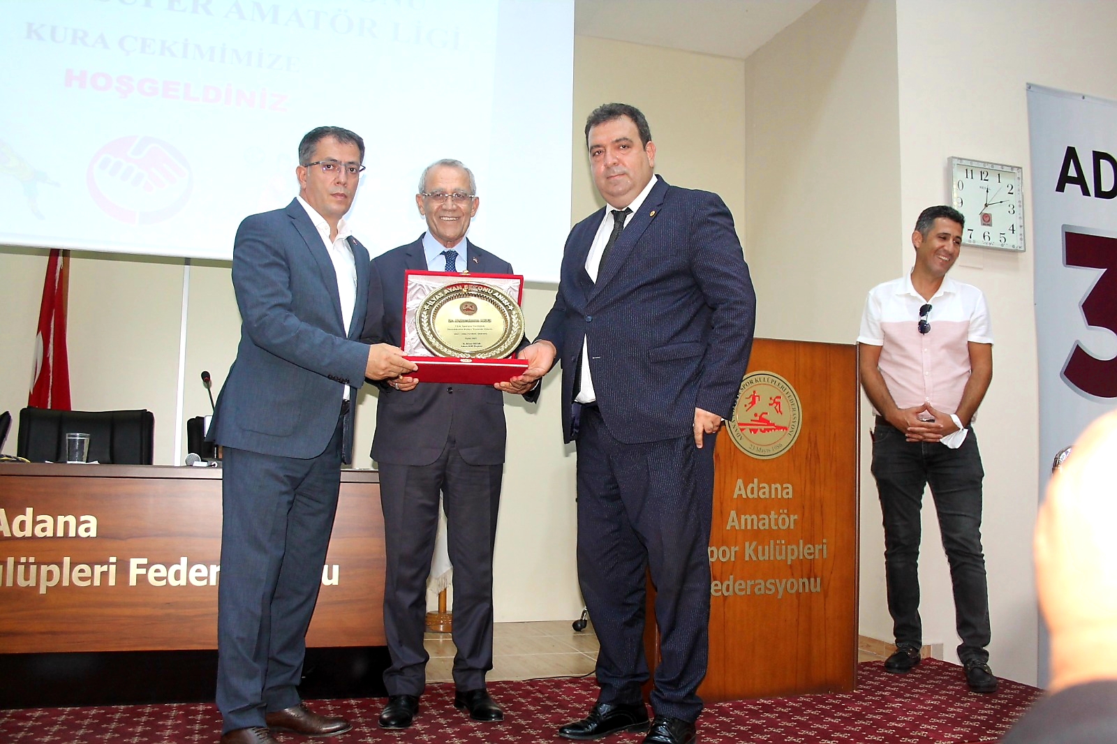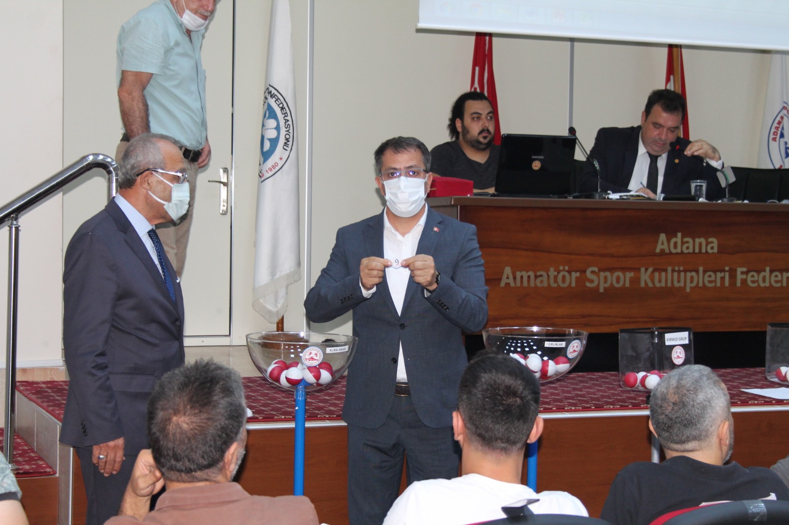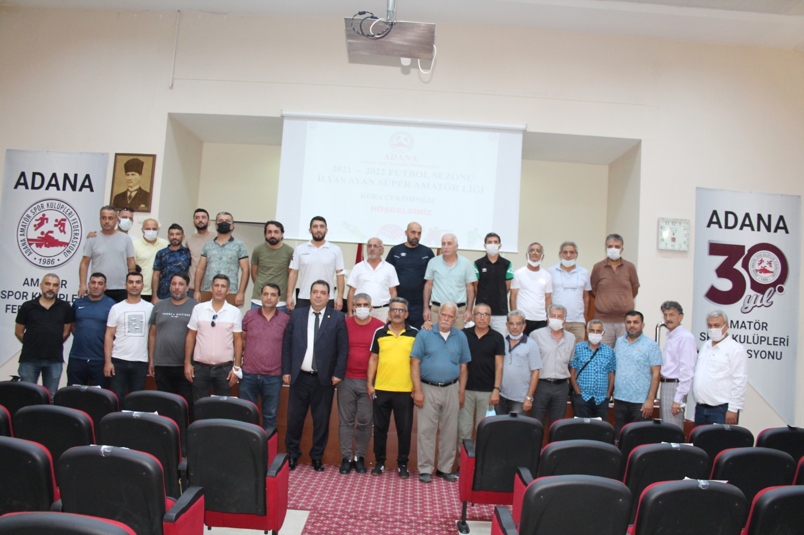 KURA ÇEKİMİNDE ÖZLENEN TABLO Adana Amatör Spor Kulüpleri Federasyonu (ASKF) Kenan Kutay Toplantı Salonu’nda çekilen kura çekimine ASKF Başkanımız Dr Ahmet Bozan, Gençlik ve Spor İl Müdürü Muzaffer Çintimar, Türkiye Faal Futbol Hakemleri ve Gözlemcileri Derneği (TFFHGD) Genel Başkanı Abdurrahman Arıcı, TFF Adana Bölge Müdürü Akif Oflaz Adana Futbol İl Temsilcisi Bülent Oymacı, Adana İl Futbol Hakem Kurulu Başkanı Burak Cem Tahiroğlu, İl Disiplin Kurulu Başkanı Av Tuna Erdem, Saha Komiserleri Derneği Başkan Mahmut Uzunoğlu, MUSADER Başkanı Ragıp Okur, TÜFAD Adana Şubesi Başkanı Yardımcısı Kadir Gül, ASKF Genel Sekreteri Ergin Ulun, ASKF Başkan Yardımcıları Engin Kanber, Hüseyin Arat, CHP Adana İl Başkan Yardımcısı ve Denizli Mithatpaşaspor Genel Kaptanı Hacı Karaaslan, Seyhan Belediyespor Genel Kaptanı Gökhan Üney ve Süper Amatör Lig kulüplerinin başkan ve yöneticileri katıldı.