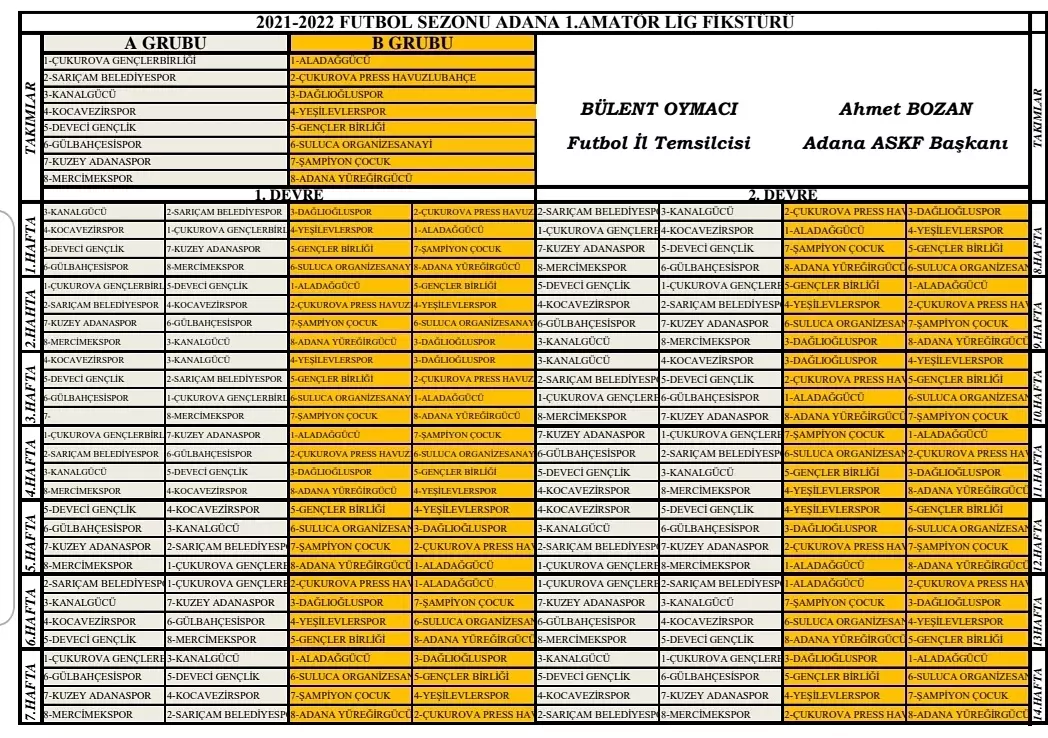 Adana Amatör Spor Kulüpleri Federasyonu (ASKF) Kenan Kutay Toplantı Salonu’nda çekilen kura çekimine, Gençlik ve Spor İl Müdürü Muzaffer Çintımar, ASKF Başkanımız Dr Ahmet Bozan, TFF Bölge Müdürü Akif Oflaz, ASKF Genel Sekreterimiz Ergin Ulun, Adana Futbol İl Temsilcisi Bülent Oymacı, ASKF Kurucu Başkan'ı Haluk Güner Göktürk, Saha Komiserleri Derneği Başkanı Mahmut Uzunoğlu, MUSADER Başkanı Ragıp Okur, İHK Üyesi Kadir Buldu, ASKF Yönetim Kurulu Üyemiz Kamil Aslan ve Murat Mert, Dr. Alper Pişkin, Derviş Hızar, Recai Yağ ve 1.Amatör Lig Kulüplerinin başkan ve yöneticileri katıldı.