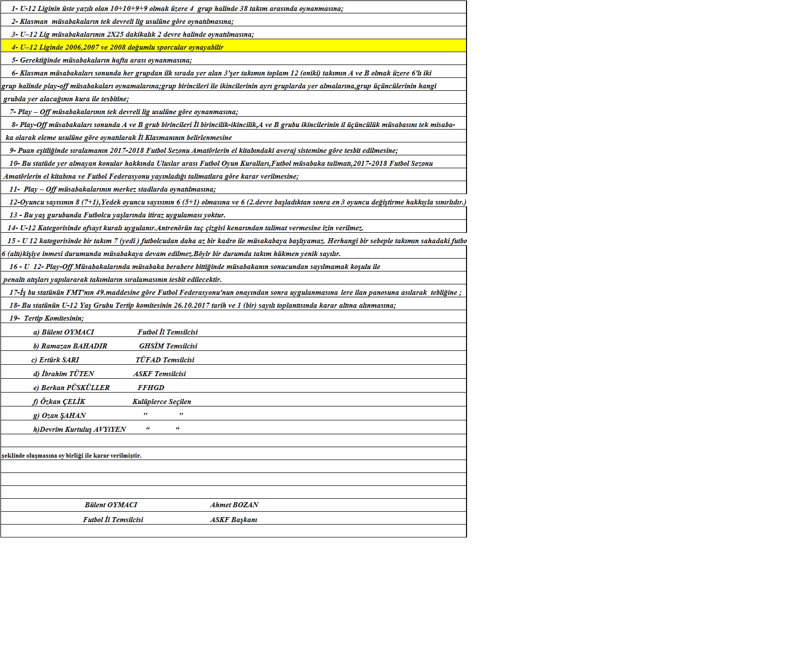 U-12 YAŞ GRUPLAR VE STATÜLERİ AÇIKLANDI