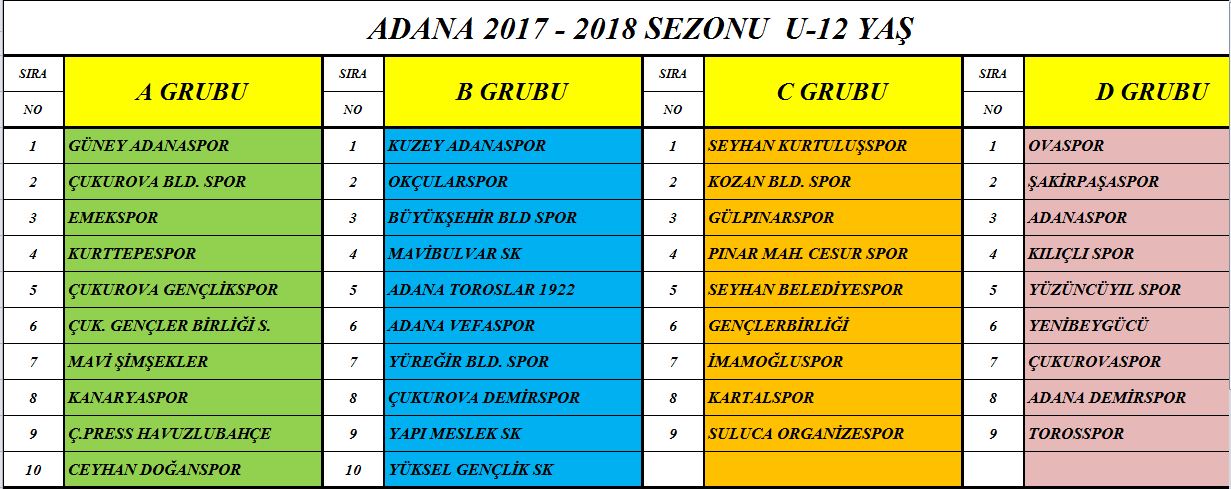 Buna göre oluşan gruplar ve statüleri aşağıda belirlenmiştir. U-12 Yaş Liginde mücadele eden tüm takımlarımıza, sporcu evlatlarımıza ve amatör camiamıza ligimizin hayırlı olmasını dileriz.