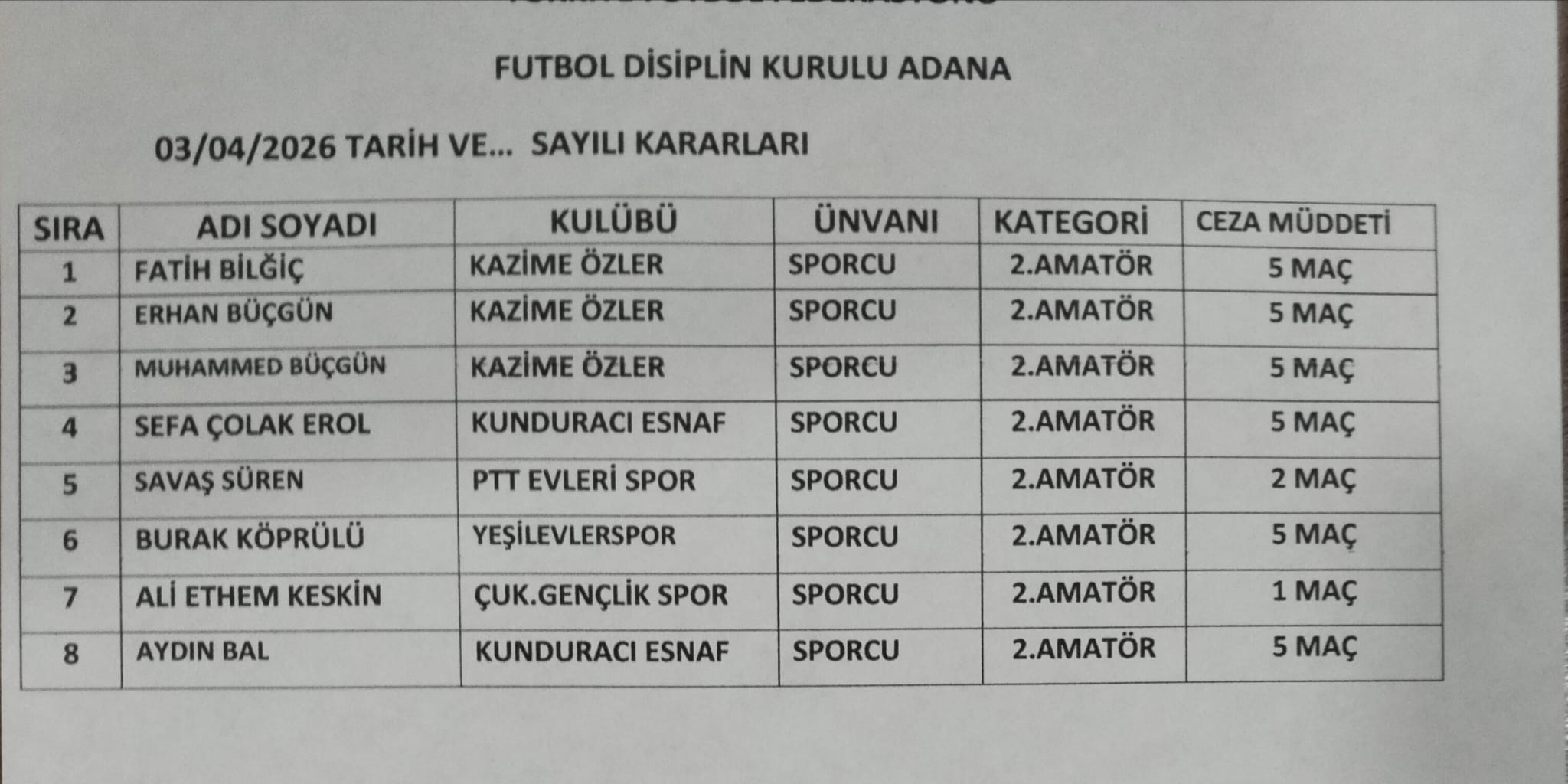 2 MART 2026 İL DİSİPLİN KURULU KARARLARI
