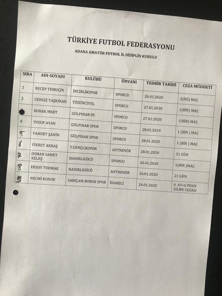 06 ŞUBAT 2020 İL DİSİPLİN KURULU KARARLARI