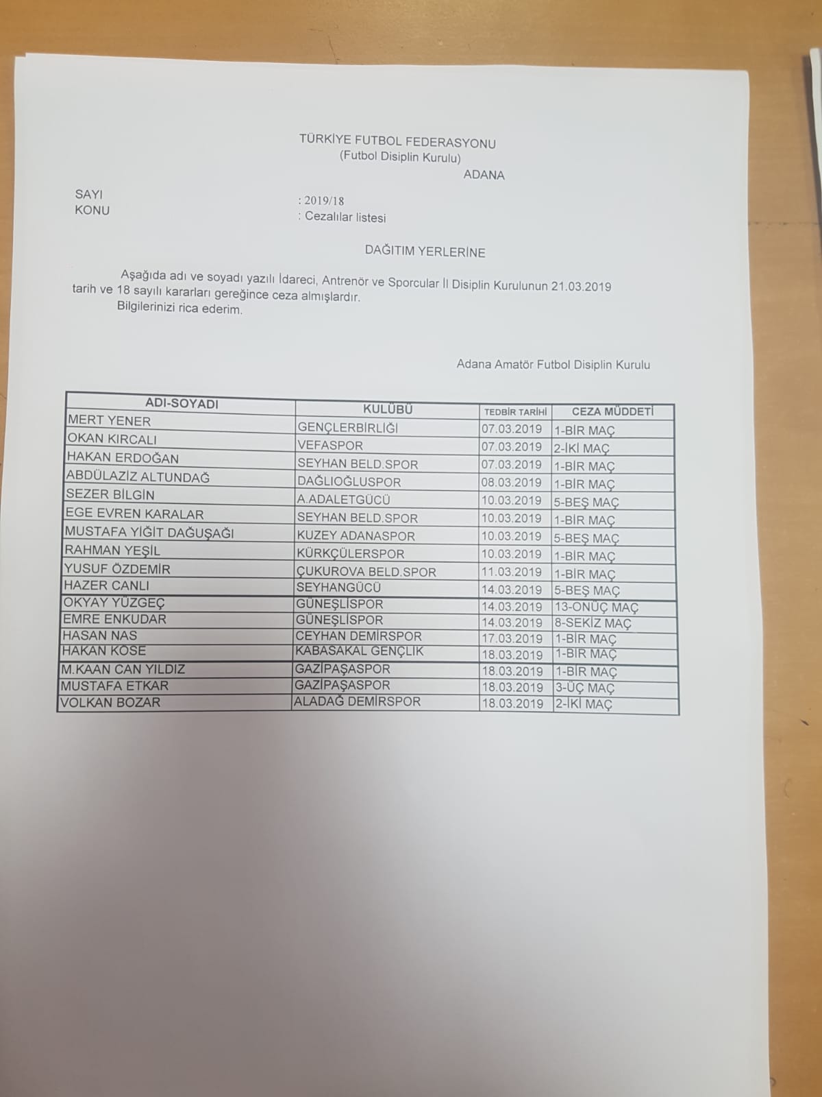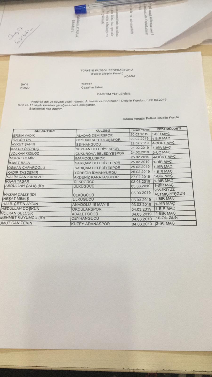 06.03.2019 DİSİPLİN KURULU KARARLARI