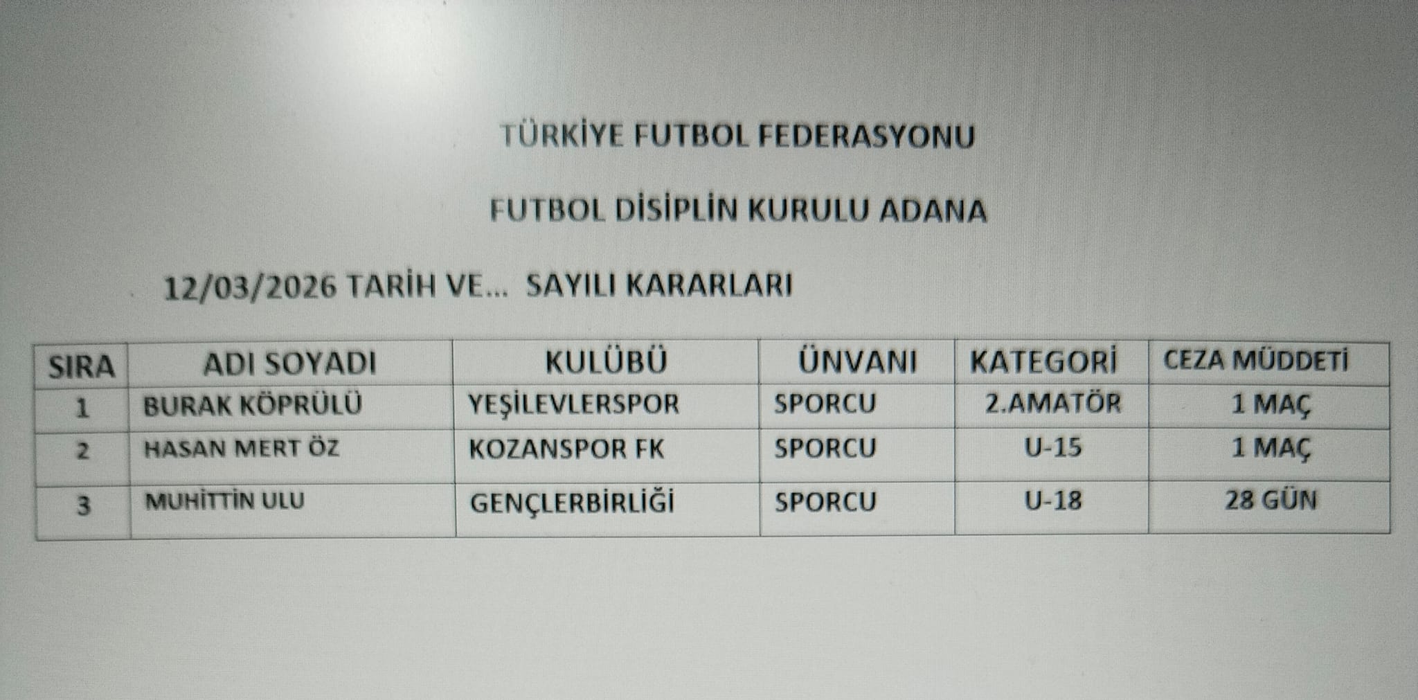 12 MART 2026 İL DİSİPLİN KURULU KARARLARI