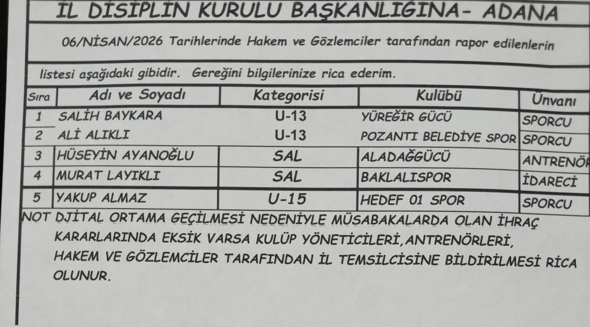 06 NİSAN 2026 İL DİSİPLİN KURULU SEVKLERI
