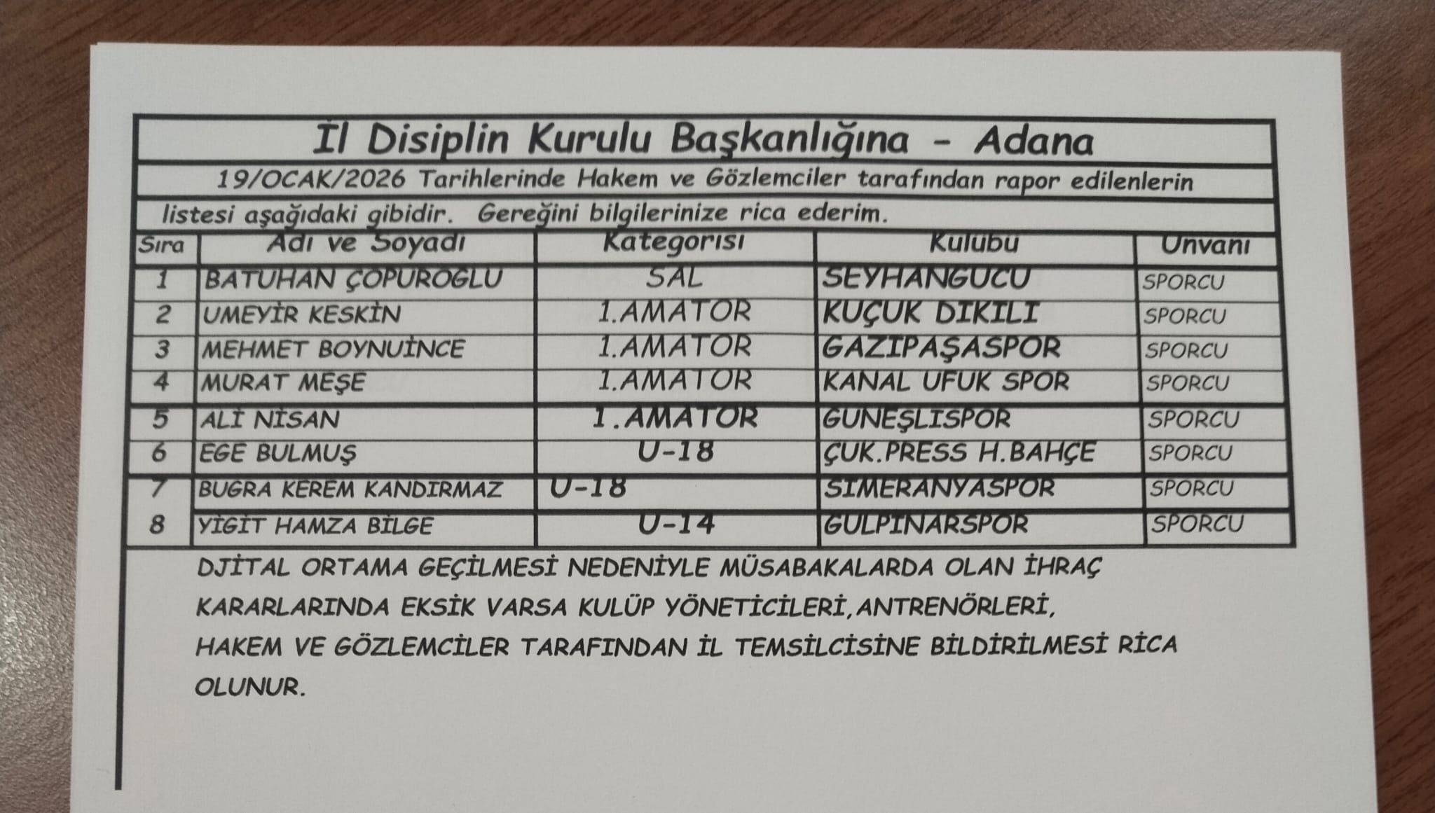 26 OCAK 2026 İL DİSİPLİN KURULU SEVKLER